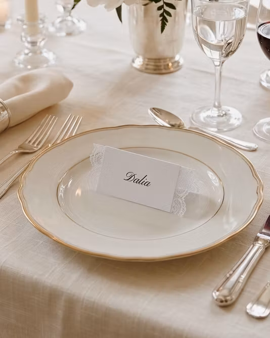 Ge varje plats en mjuk och genomtänkt känsla med våra eleganta placeringskort med spetskant. En liten detalj som gör stor skillnad i helhetsintrycket – och som knyter ihop er dukning på ett vackert sätt.