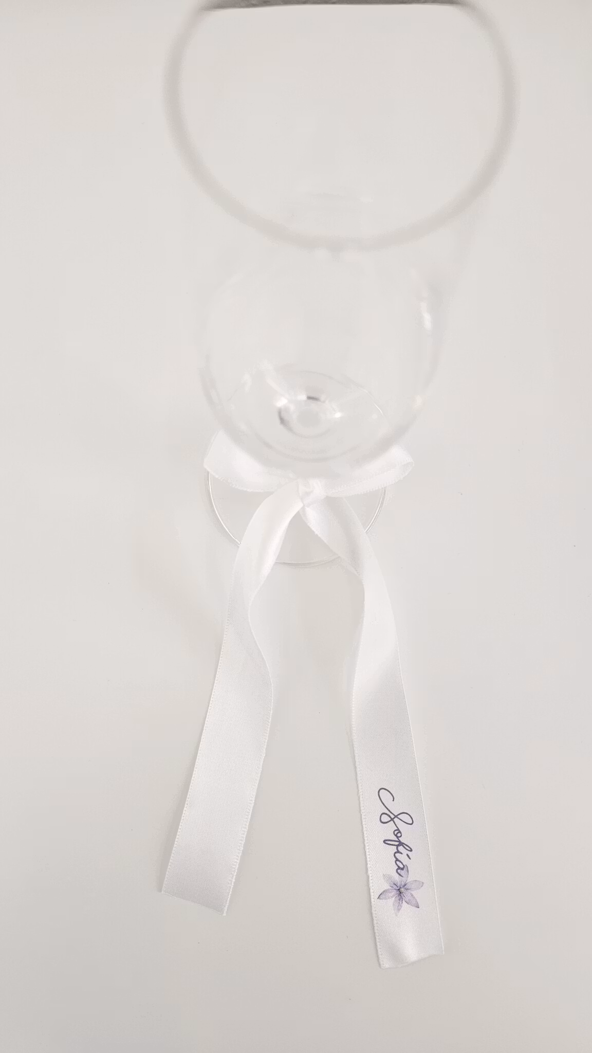 Våra vita satinband trycks med namn i valfri färg för att matcha ert tema. Ni kan välja mellan flera stilrena fonter – eller skicka in er egen för att hålla en röd tråd genom era trycksaker. Vill ni addera ett monogram eller en ikon? Det går självklart också!