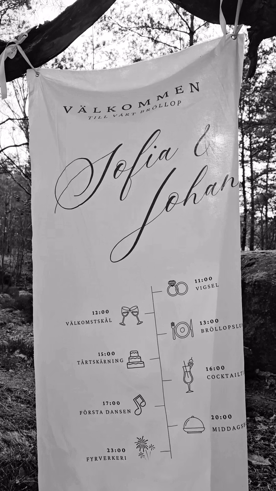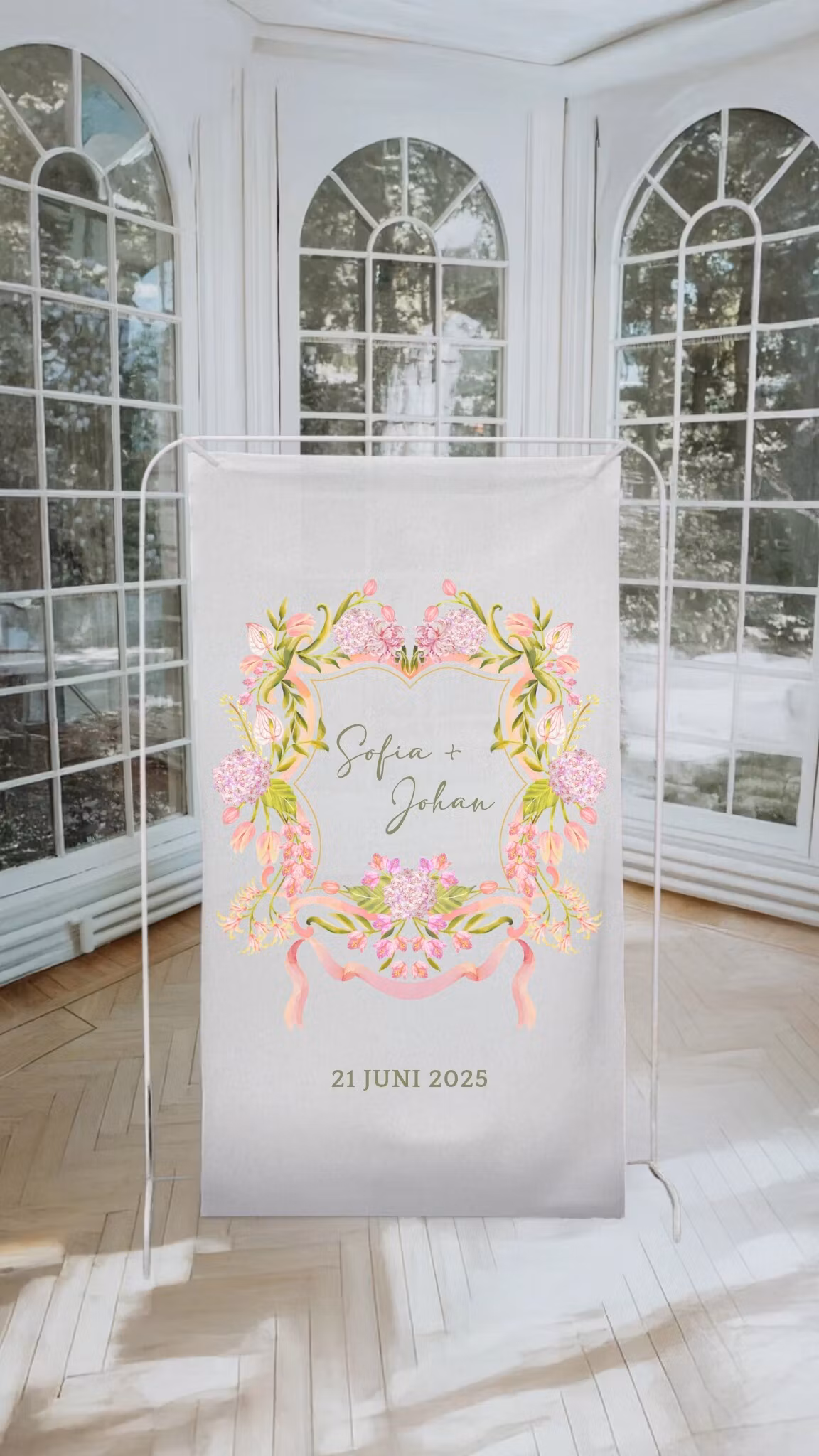 Gör entrén till ert bröllop oförglömlig med en välkomstskylt i tyg från Your Story, Your Sign-kollektionen. Denna kollektion ger er möjlighet att skapa en helt unik och personlig skylt, perfekt för att ge er entré ett minnesvärt och stilfullt intryck på ert bröllop eller event.